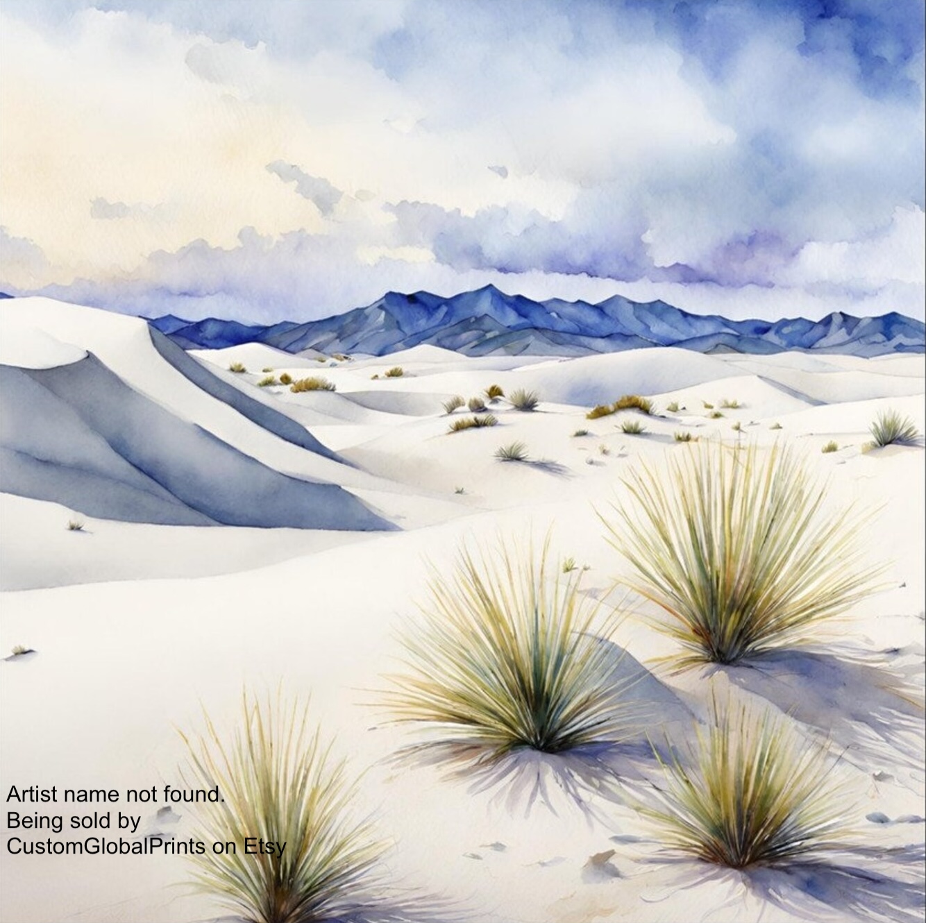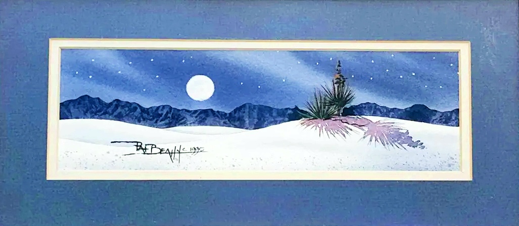 Above: Watercolor of White Sands by artist Pat Beatty of Alamogordo, NM, shared as an example of a beautiful depiction of lost and found edges in watercolor to describe sand dunes in NM.