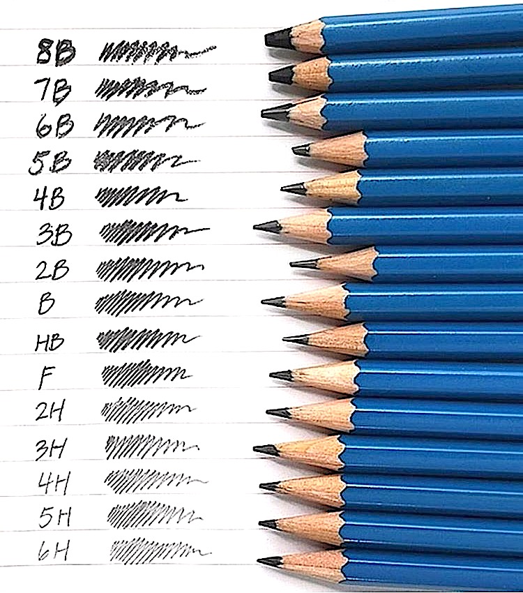 - Pencil numbering system indicates the degree of darkness and thickness of the lines they create: