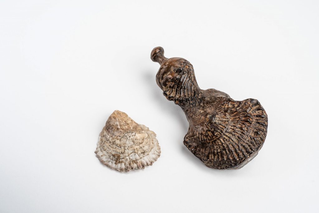 “Both amassed great collections over their lifetimes of animal skulls and bones, gnarled tree roots and twisted driftwood, smooth and hollowed river and flint stones, internal coils of seashells and interlocking pebbles, and drew from its vast resources daily, fusing the shapes of the human figure in plaster and terra-cotta with those of the natural world, and questioning our relationship with the environment.” – Kathaleen Roberts, Albuquerque Journal., Sept 24, 2023