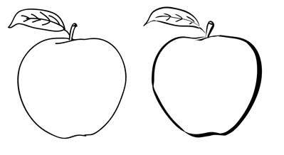 On each of these images, the drawing on the left part of the picture has uniform line weight throughout the entire drawing. The ones to the right, however, have varied line weight. All are essentially contour drawings. But notice the difference in the information and feelings expressed in the drawings utilizing varied line weight/pressure. That sense of light, dark and dimensionality is missing in the ones with lines of uniformed thickness.