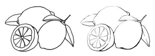 Notice in the image on the extreme right column above that the areas of highlight, with light shining on them or the areas of lost edges (due to not enough contrast) are usually rendered with thinner and more delicate lines, whereas darker and thicker lines are used for designating the more contrasting areas with stronger edges or the areas with less light
