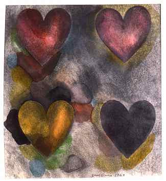 By singling out one shape and returning to it repeatedly, Dine suggests to the viewer that it has significance to be discovered. Through his close focus on the simple form of the heart, and his repeated and prolonged attention to this iconic shape, Dine transforms a trite, almost meaningless subject into something that demands our attention and our consideration. Confronted with a series of hearts, the viewer begins to believe there must be some value to this subject, even though Dine has claimed his interest is largely visual.”